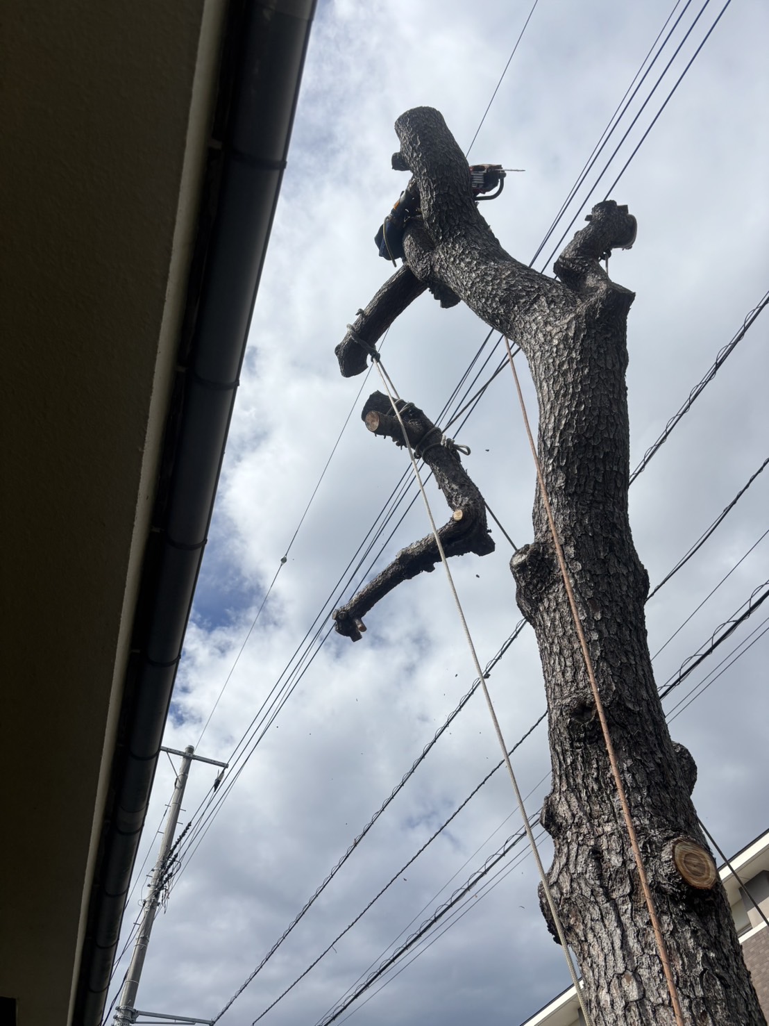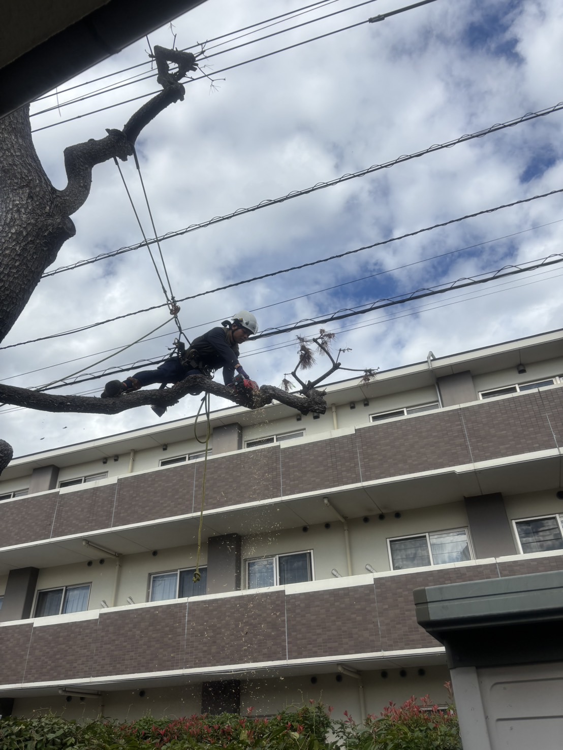 木の枝が電線にまで達すると、停電や火災の原因となることがあります。電線に接触する枝を切るのは簡単ではないため、特殊伐採の技術が求められます。