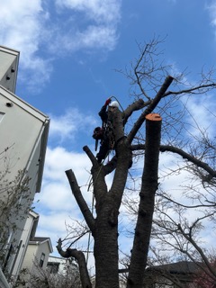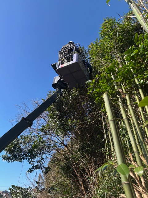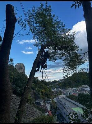 クレーン車や高所作業車が使えない場所での高木伐採作業や建物のすぐ近くに生えてしまっている高木伐採、電線が近くにある場所での高木伐採・高木剪定、斜面や崖やの高木伐採・剪定、墓地や寺院などの高木伐採・前定など、他社で断られてしまった案件もお任せください!