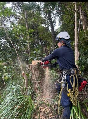 私たちは、一般的な伐採業者や造園業者からの依頼を受けて、特殊伐採を専門に行っています。特に難易度の高い状況での伐採を得意としており、すべての作業は有資格者が担当します。10メートル以上の高さに登れるプロフェッショナルが在籍しており、高木に登れる職人は非常に希少な存在です。お客様が「こんな高い木も切れるのか」と驚かれるような木でも、しっかりと対応可能です。これまで伐採できなかった木は一切ありません。重機が入らない場所でも完全に対応いたします。