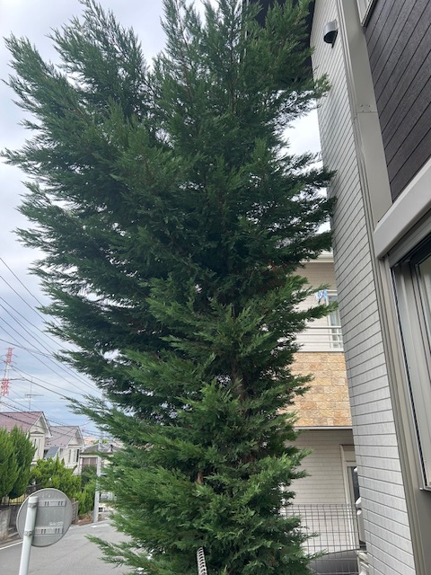 横浜市鶴見区にて、幹回り60cm・高さ7mのカイズカイブキの伐採をご依頼いただきました。