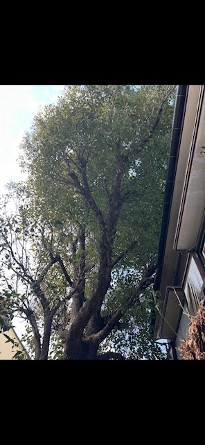 横浜市旭区にて、幹周り約90cm・高さ7mの金木犀を伐採しました。成長しすぎて枝葉が隣家の敷地へ越境し、日当たりや景観に影響を与えていたため、伐採をご依頼いただきました。